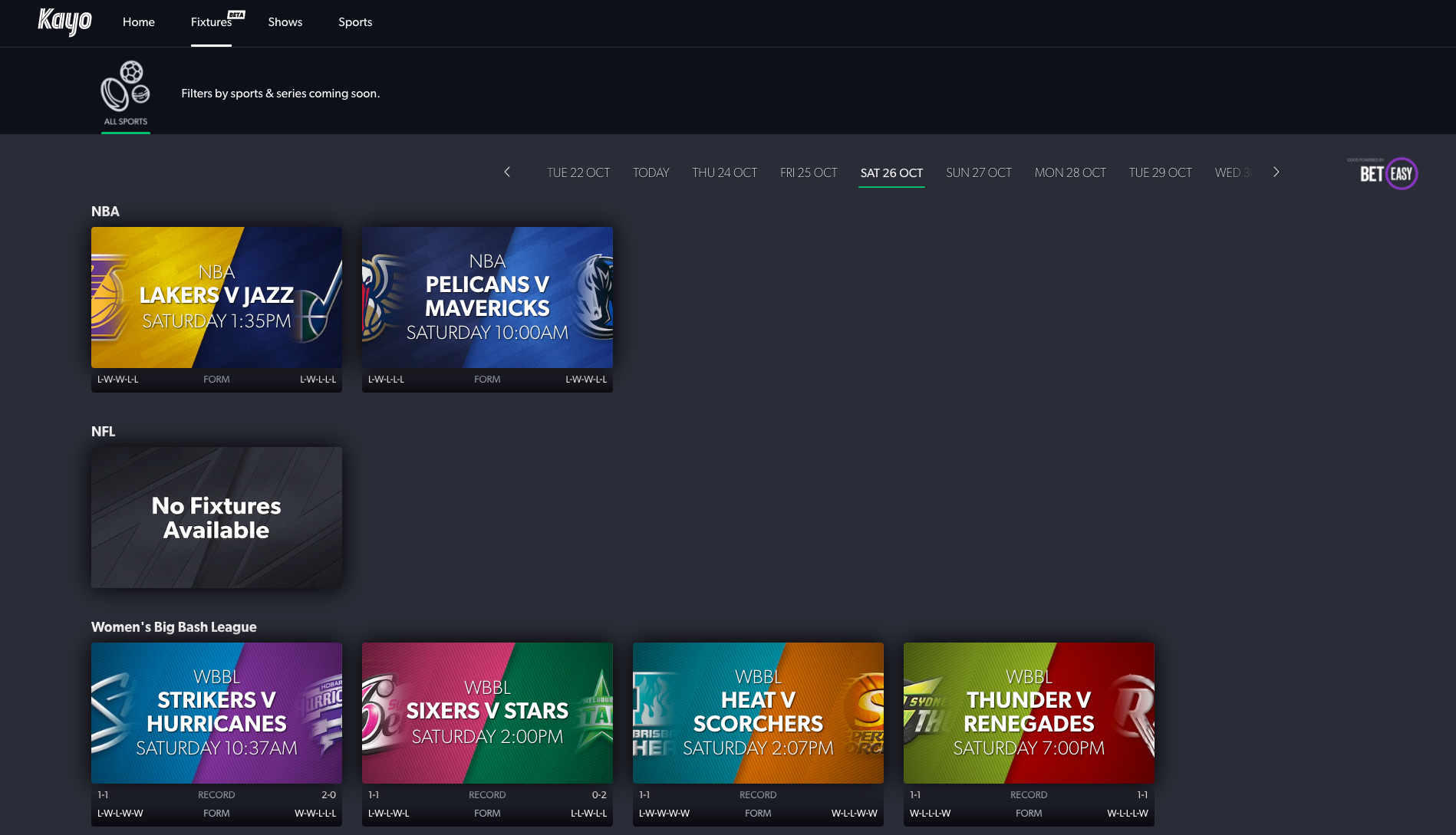 To view Fixtures on a web browser, visit: https://kayosports.com.au/fixtures